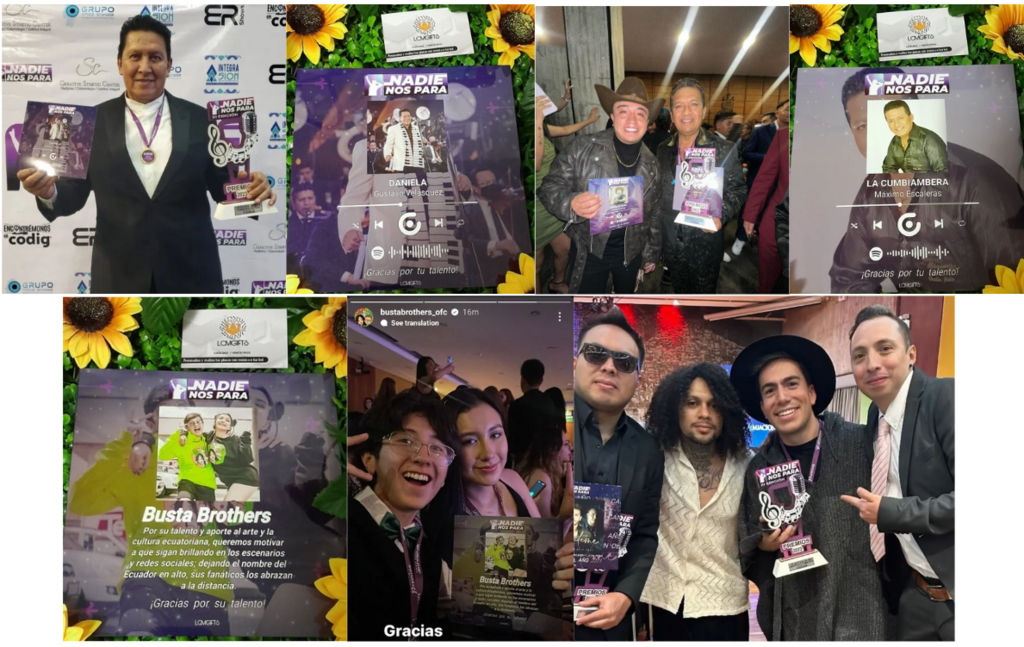 PLACAS DE RECONOCIMIENTO Y TIPO SPOTIFY, MÁS DE 100 UNIDADES PARA ARTISTAS E INFLUENCERS ECUATORIANOS POR 2 AÑOS SEGUIDOS.