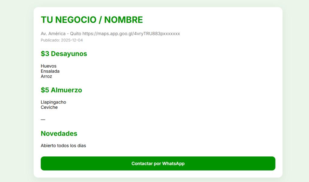 ✓ Ideal para negocios con menú diario o variaciones frecuentes.